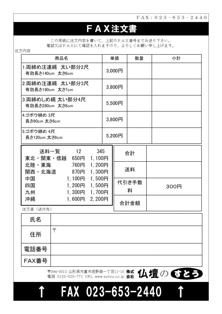 下記の用紙による、FAXでのご注文もお受けしております。