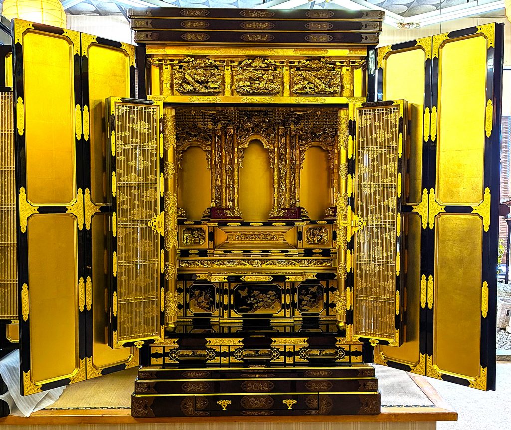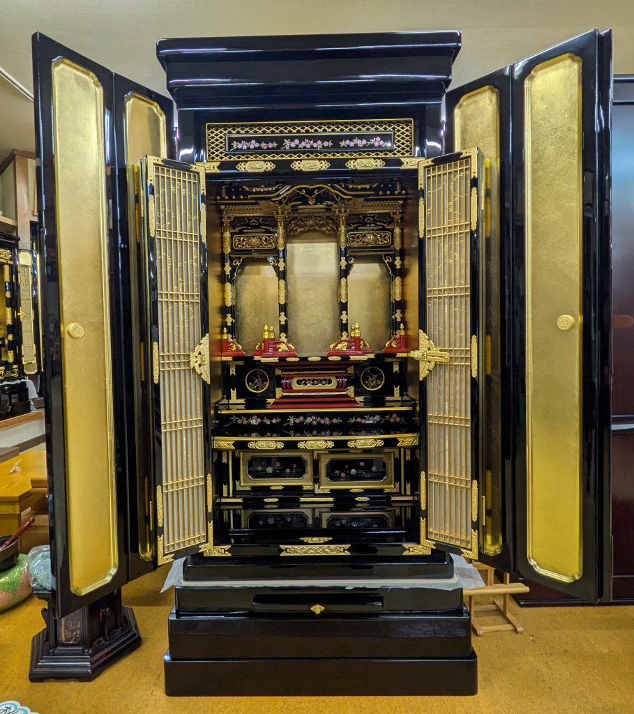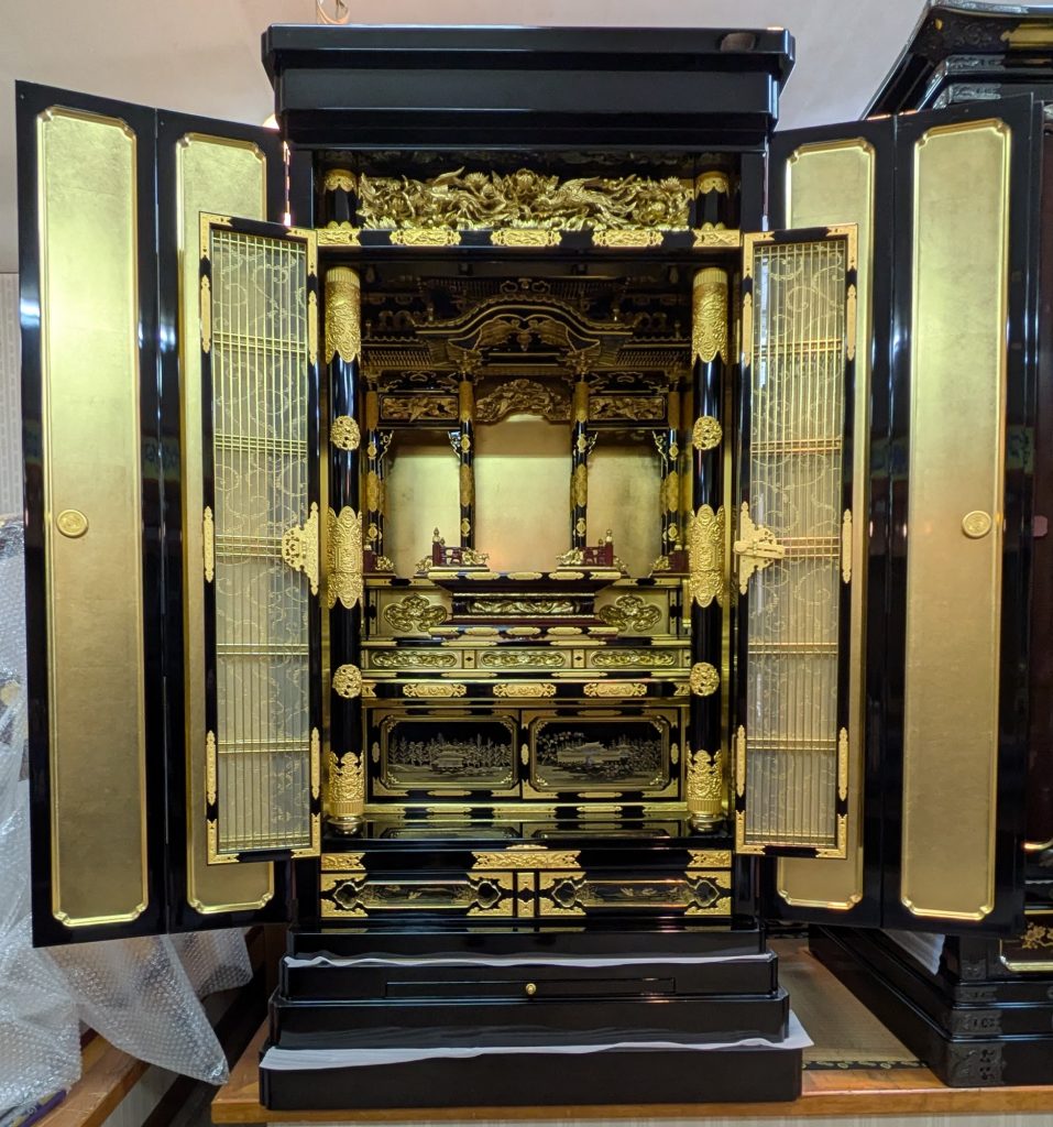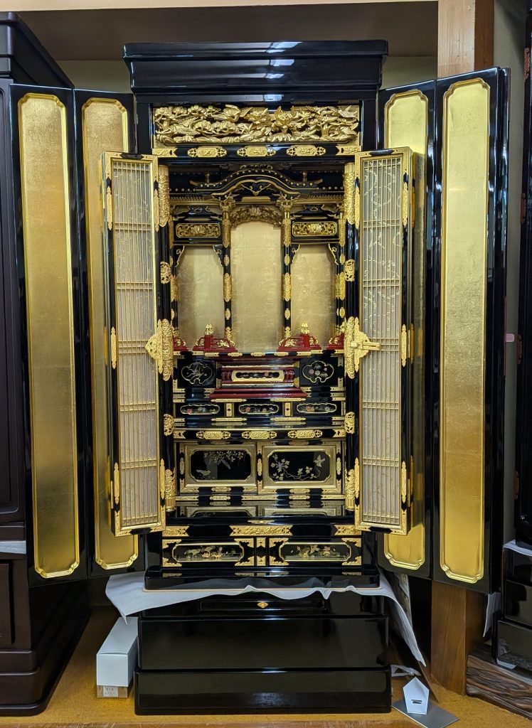 【金仏壇】 ※実物をご覧になられたい方は、当店へご来店ください。お待ちしております。 輝琉 46号 光蓮 18号 蒔絵付 京型 18号 京型 18号 東用 京型 20号 蒔絵付 京型 20号 東用 玉龍 20号 東 瑞雲 20号 ケヤキ 宝林 24号 京型 24号 西 京型 24号 本山 宝重 24号 三方開 京型 26号 本山 金峰 26号 柱黒 京型 26号 西 寶重 40号 三方開